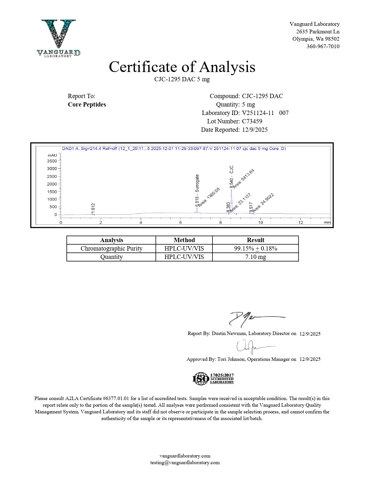 Researchers conducted two clinical studies in 2006 to examine the action of CJC-1295 DAC. In the first study, CJC-1295 DAC or a placebo was presented in one of four ascending concentrations. In the second study, CJC-1295 DAC was presented repeatedly at a single concentration. According to the results, after the introduction of CJC-1295 DAC, there appeared to be an increase in GH and insulin-like growth factor-1 (IGF-I) levels among the research models.(5)CJC-1295 DAC is thought to elevate levels of IGF-1 by increasing growth hormone production, which in turn may bind to receptors on liver cells, potentially triggering a cascade of intracellular signaling processes. This binding might activate the Janus kinase-signal transducer and activator of the transcription (JAK-STAT) signaling pathway. Subsequently, the activated STAT proteins might migrate to the nucleus, where they may attach to specific DNA sequences considered to be response elements, potentially resulting in the transcription of the IGF-I gene. It is theorized that the IGF-I produced in liver cells may be transported to various target tissues. Additionally, it is believed that many tissues possess GH receptors, which, upon activation, may lead to the production of IGF-I within the tissues themselves. IGF-I is considered a potent hormone that may play a key role in promoting growth, suggesting it mediates many growth and anabolic effects of growth hormone. It is hypothesized to encourage cell growth and proliferation, as well as the enlargement and strengthening of tissues and organs, possibly aiding in protein synthesis and cellular expansion. Preliminary exposure to CJC-1295 DAC in experimental models has been suggested to significantly affect average growth hormone levels, with studies reporting an apparent increase of 2- to 10-fold for 6 days or possibly longer. Moreover, CJC-1295 DAC has been suggested to lead to dependent increases in average IGF-I levels by 1.5- to 3-fold for about 9–11 days, with suggestions that IGF-I levels may remain high for at least two weeks in experimental models. Following repeated exposure to CJC-1295 DAC, average IGF-I levels appear to remain elevated above baseline for up to 28 days. Notably, data suggests a cumulative effect following repeated exposure of the compound.(5)